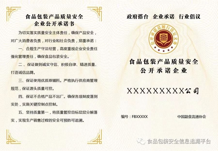 食品包裝質(zhì)量公開(kāi)承諾企業(yè)