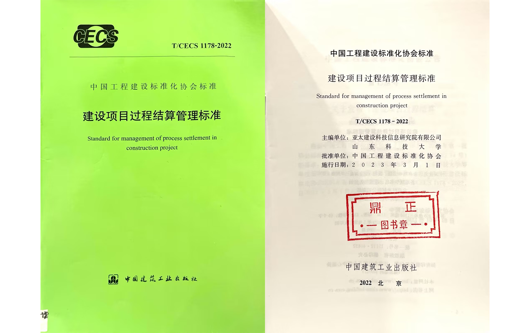 ▲《建設(shè)項(xiàng)目過(guò)程結(jié)算管理標(biāo)準(zhǔn)》封面及扉頁(yè)